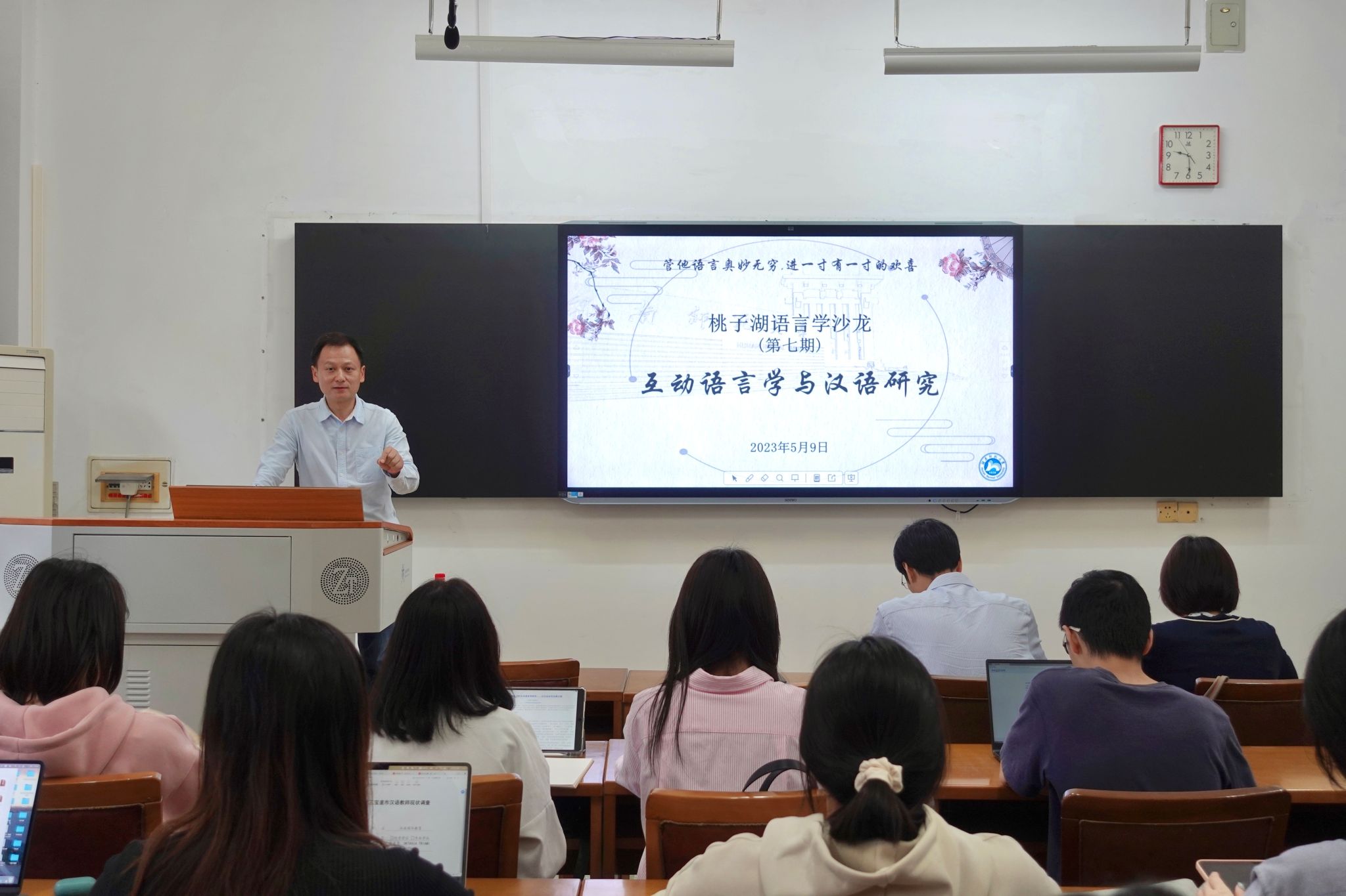 在互动环节,师生们就互动语言学研究的语料问题、互动语言学与类型学、汉外对比的结合等相关论题展开了交流与讨论。