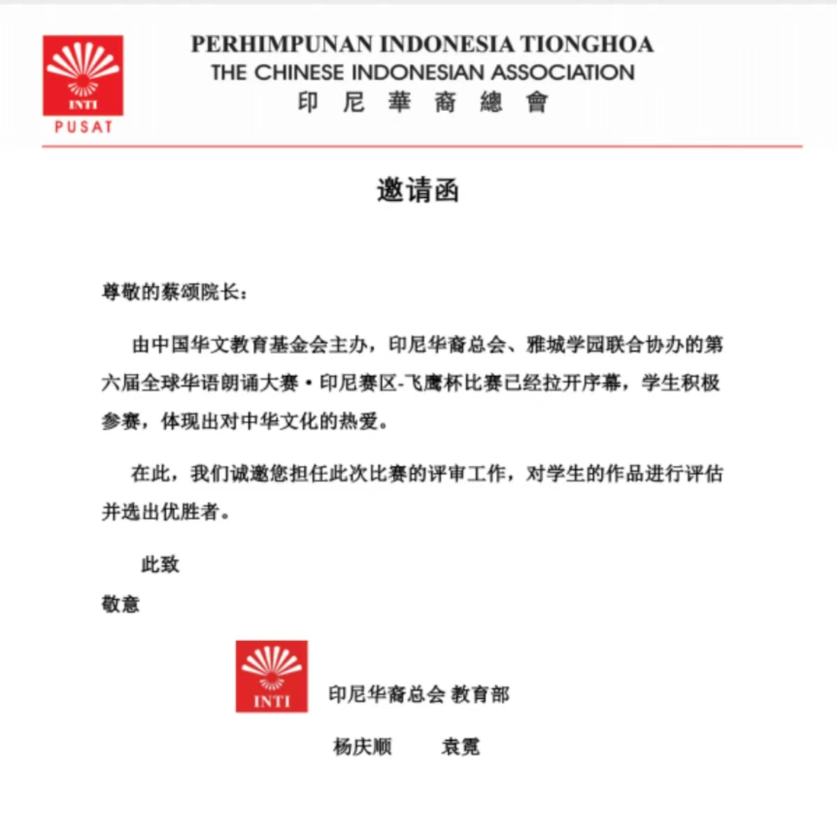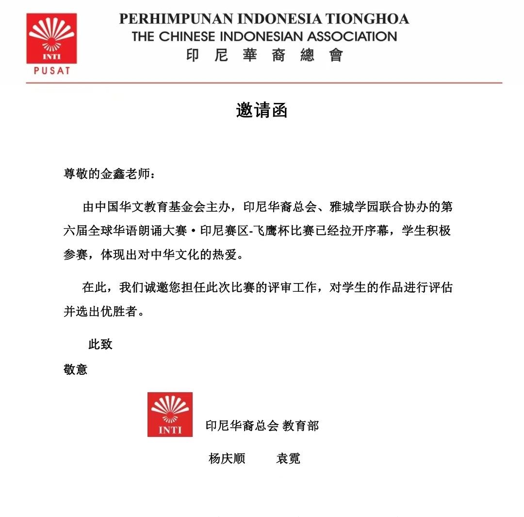 beats365教师受邀担任第六届全球华语朗诵大赛印尼赛区评委