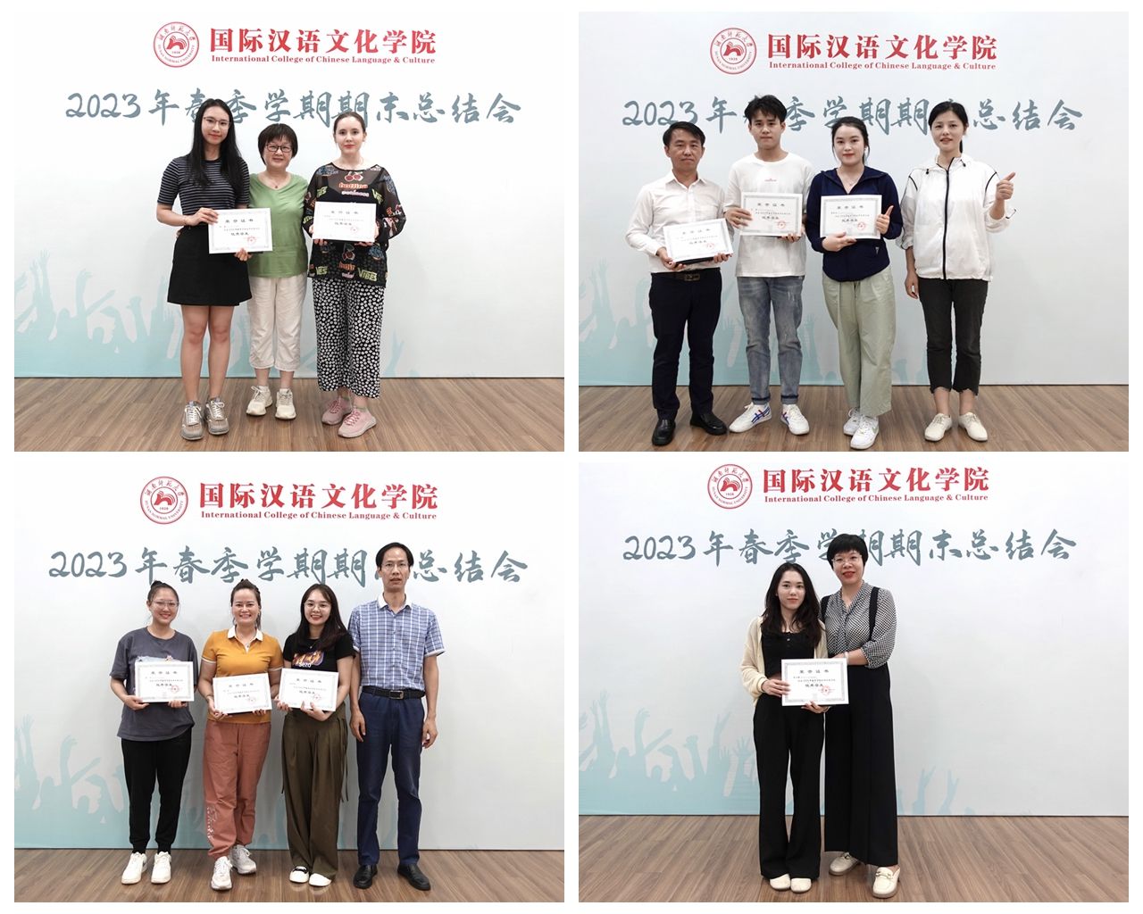 田天宣布了语言生的优秀员工名单。各班班主任为优秀员工颁发证书,并合影留念。