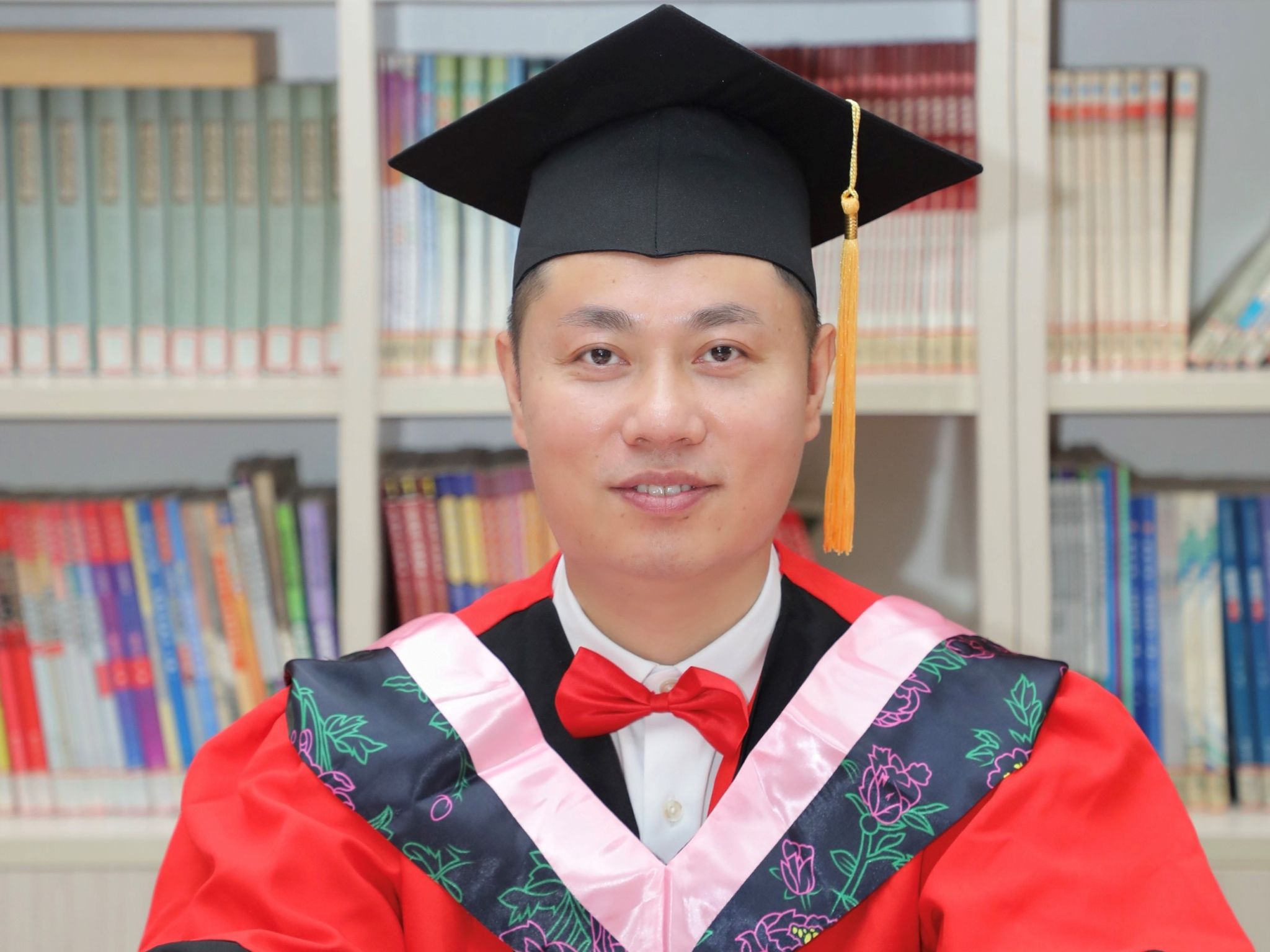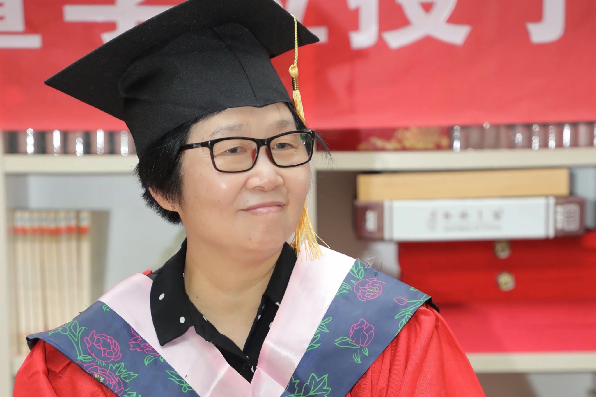 蔡颂与导师代表为毕业生颁发毕业证书,拨苏正冠,合影留念。