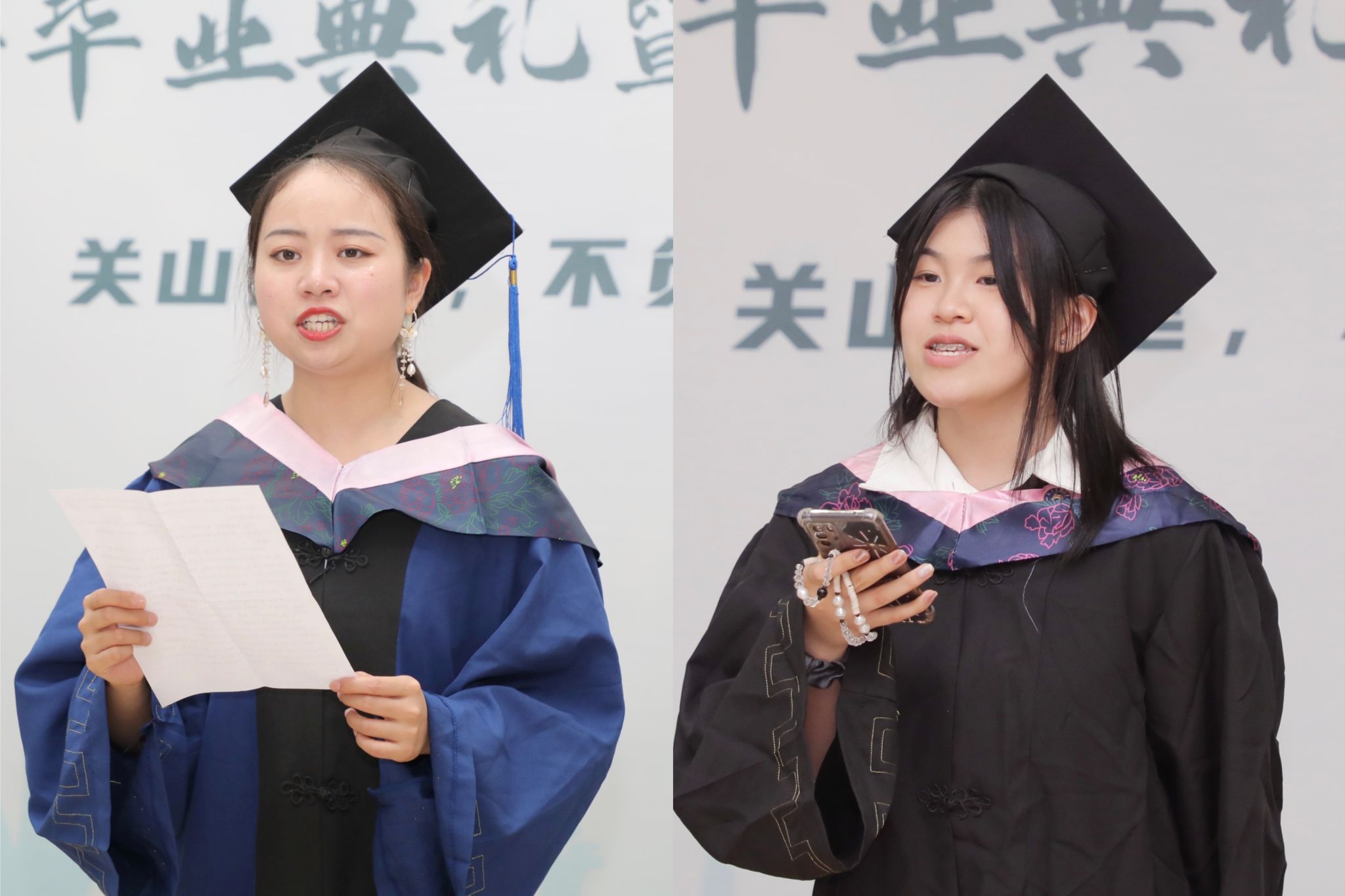 研究生毕业生代表张玉清,本科生毕业生代表、马来西亚员工刘蔼萱依次发言。他们回顾了自己在师大的求学历程,对师长的辛勤付出表示衷心感谢,并祝全体毕业生前程似锦。