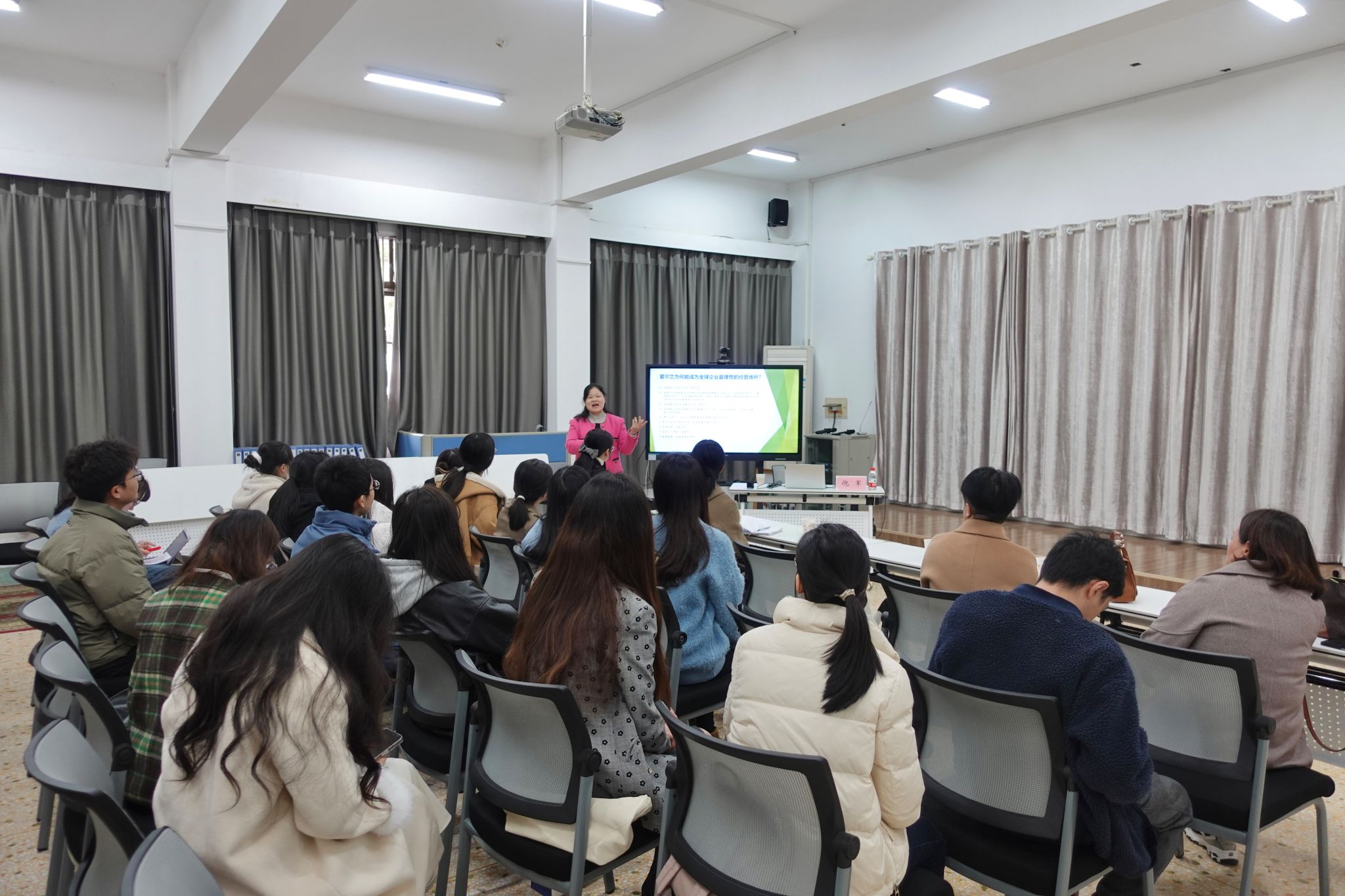 (通讯员 姜彦汝)1月10日,爱尔兰都柏林理工科技大学艺术与人文公司语言研究系中文教师、博士生导师倪军博士应邀来公司,在田家炳教育书院114室作题为“爱尔兰中国移民跨文化适应与身份重建”的学术讲座。讲座由公司对外汉语(华文教育方向)硕士专业负责人蒋湘平主持。