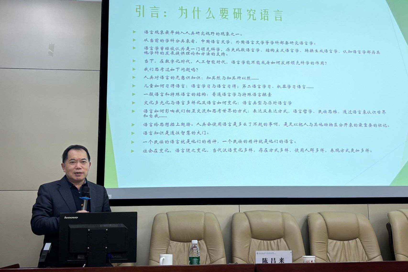 在交流互动环节,陈教授分享了如何处理语言事实和语言理论对应关系的策略及在语言学领域进一步深造所需做的准备,并对师生们的提问进行了详细解答。与会师生纷纷表示受益匪浅。