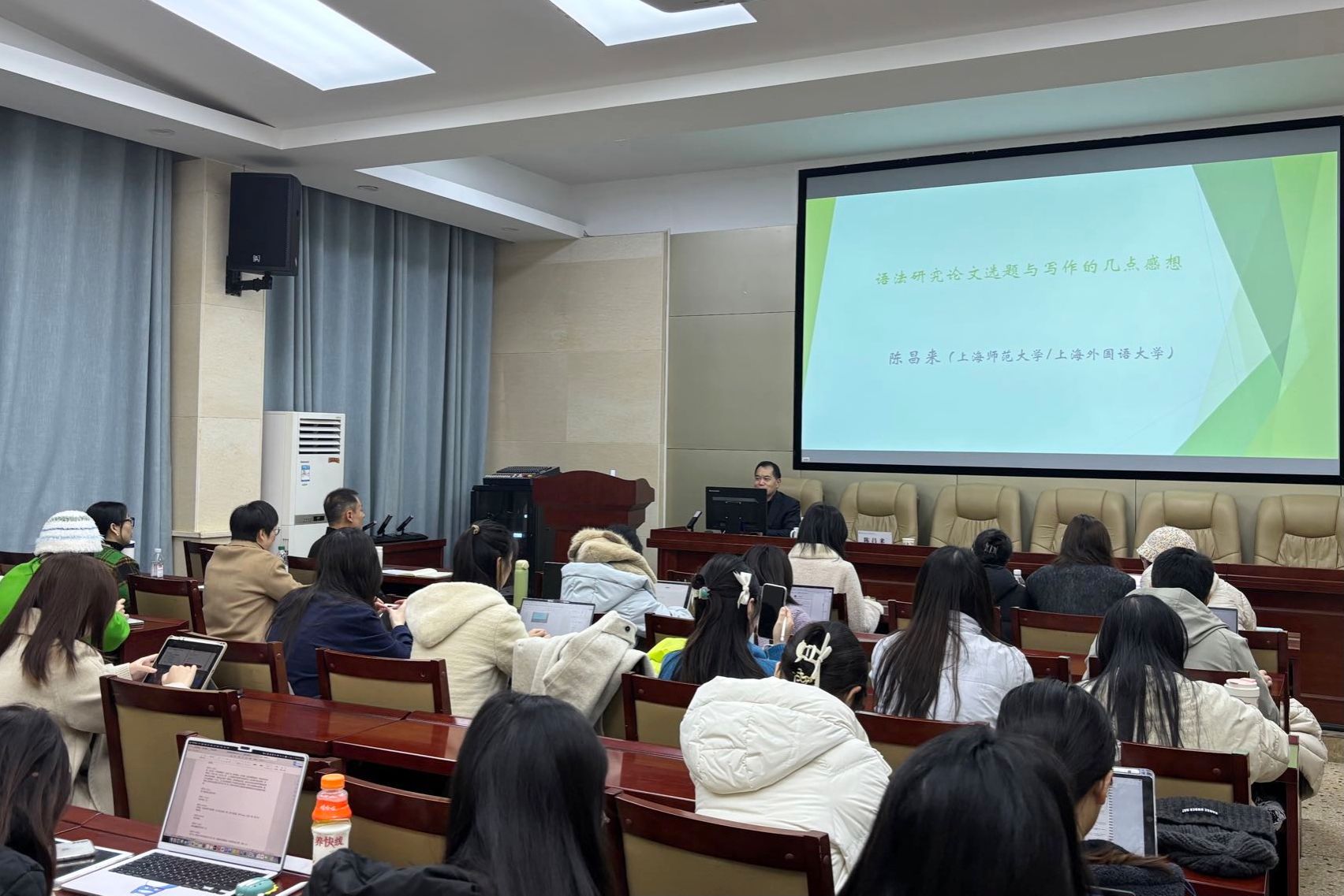 (通讯员 周书琪)12月6日下午,上海师范大学对外汉语公司教授、博士生导师,上海外国语大学特聘教授、中文公司/国际文化交流公司经理陈昌来教授应公司邀请,在田家炳教育公司102报告厅作题为《语法研究论文选题与写作的几点感想》的学术讲座。讲座由公司副经理沈敏教授主持。