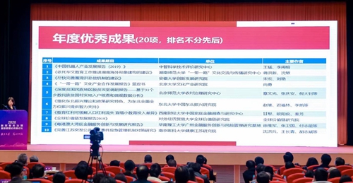 为集中展现中国特色新型智库在理论创新、决策咨询和舆论引导等方面的突出成绩与经验做法,中国智库索引(CTTI)向来源智库征集评选“CTTI来源智库2020年度研究成果”,从全国268项入围成果中评选出20项“年度优秀成果”并在大会现场揭晓。蒋洪新教授、沈敏副教授的智库研究成果“依托华文教育工作推进湖南海外形象构建的建议”荣获“年度优秀成果”奖。