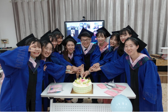 欢送会逐渐进入尾声。毕业生在会场播放了自己录制的毕业视频,一个个精彩的镜头,一幕幕难忘的画面,无不唤起师生们幸福美好的回忆。研一研二的学弟学妹们也带来丰富多彩的节目,并为学长学姐们送上毕业祝福蛋糕。