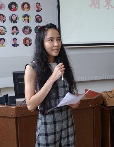 来自泰国的员工代表黄利华发言,在湖南师大,她不仅得到了长足的进步,还收获了珍贵的友谊,和不同国家的同学们一起学习的体验很独特,大家在一起互相学习,互相帮助,对彼此的国家都有了一些了解。她说刚来中国时还不太适应,但在校期间,她深深地感受到来自老师们的关爱,老师如同朋友一般亲密无间,她感谢国汉院老师们的悉心照顾。