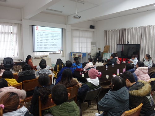 孟文华副经理从艾滋病传播途径、艾滋病疫情及风险、艾滋病预防、艾滋病的危害及相关政策法规等五个方面展开讲述。她指出,一个健康人从感染上艾滋病毒到死亡会经历HIV急性感染期、无症状期(潜伏期)、发病期等三个阶段,潜伏期虽然没有症状,但是依旧可以把体内携带的病毒传播给他人。她表示,预防艾滋病应当控制传染源,切断传播途径并且保护易感人群。此外,她结合全球艾滋病疫情概况、长沙市疫情概况等具体数据分析了现今艾滋病的疫情状况,着重强调了艾滋病对个人、家庭、经济和社会的发展等方面会产生的危害。