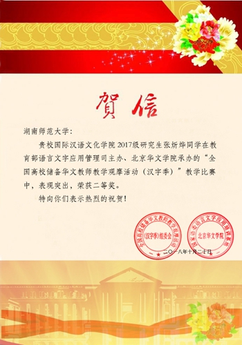 公司研究生在“全国高校储备华文教师教学观摩(汉字季)”活动中荣获二等奖