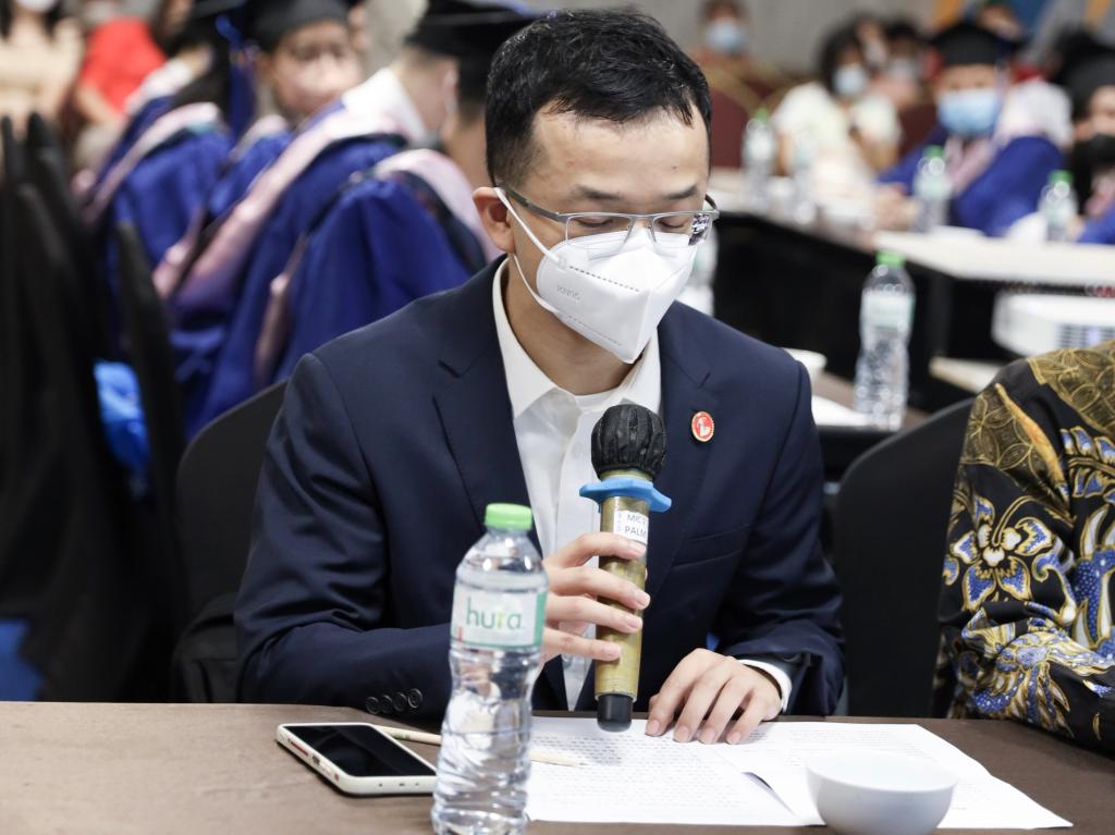 来自印度尼西亚的毕业生叶建安和中国毕业生庞海威作为代表发言。他们都表达了对老师们的衷心感谢,回顾了自己的学习生涯,并表示beats365永远是他们的家,祝愿所有毕业生们前程似锦。