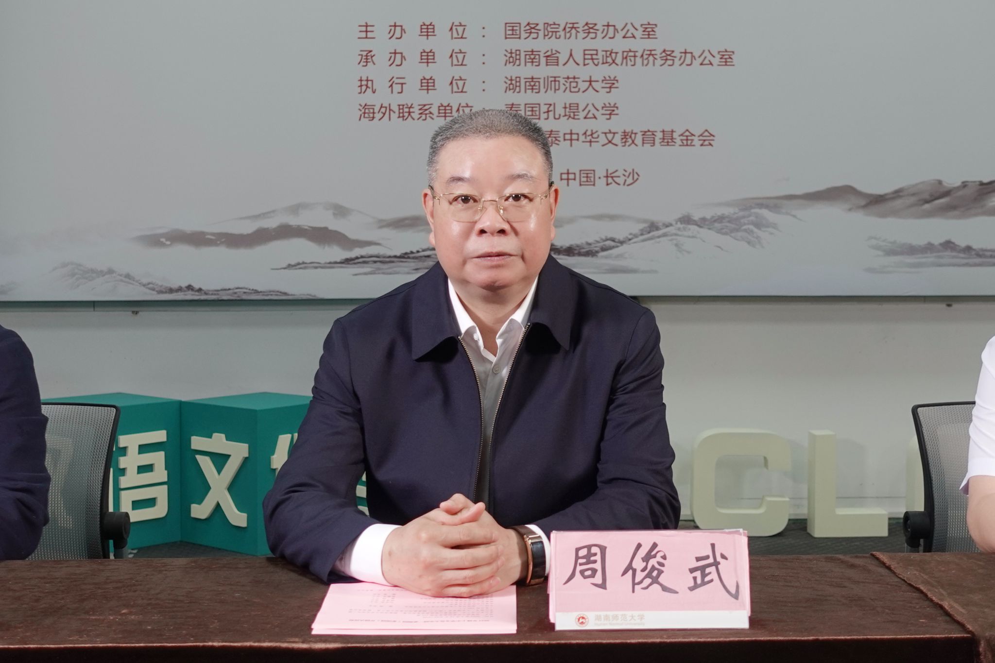 周俊武对参加此次大乐园活动的泰国华裔青少年表示热烈欢迎,对国务院侨务办公室,湖南省人民政府侨务办公室及其他相关人员为此次活动的付出致以感谢。他表示,泰国是世界上华人规模较大的国家之一,华文教育欣欣向荣,在全球“华语热”持续升温的背景下,华裔青少年参加以“体验中华文化”为主题的线上大乐园活动十分有意义,这既是一次学习之旅,更是一次友谊之旅、收获之旅。他预祝活动圆满成功,并希望大家能够学有所成、满载而归。