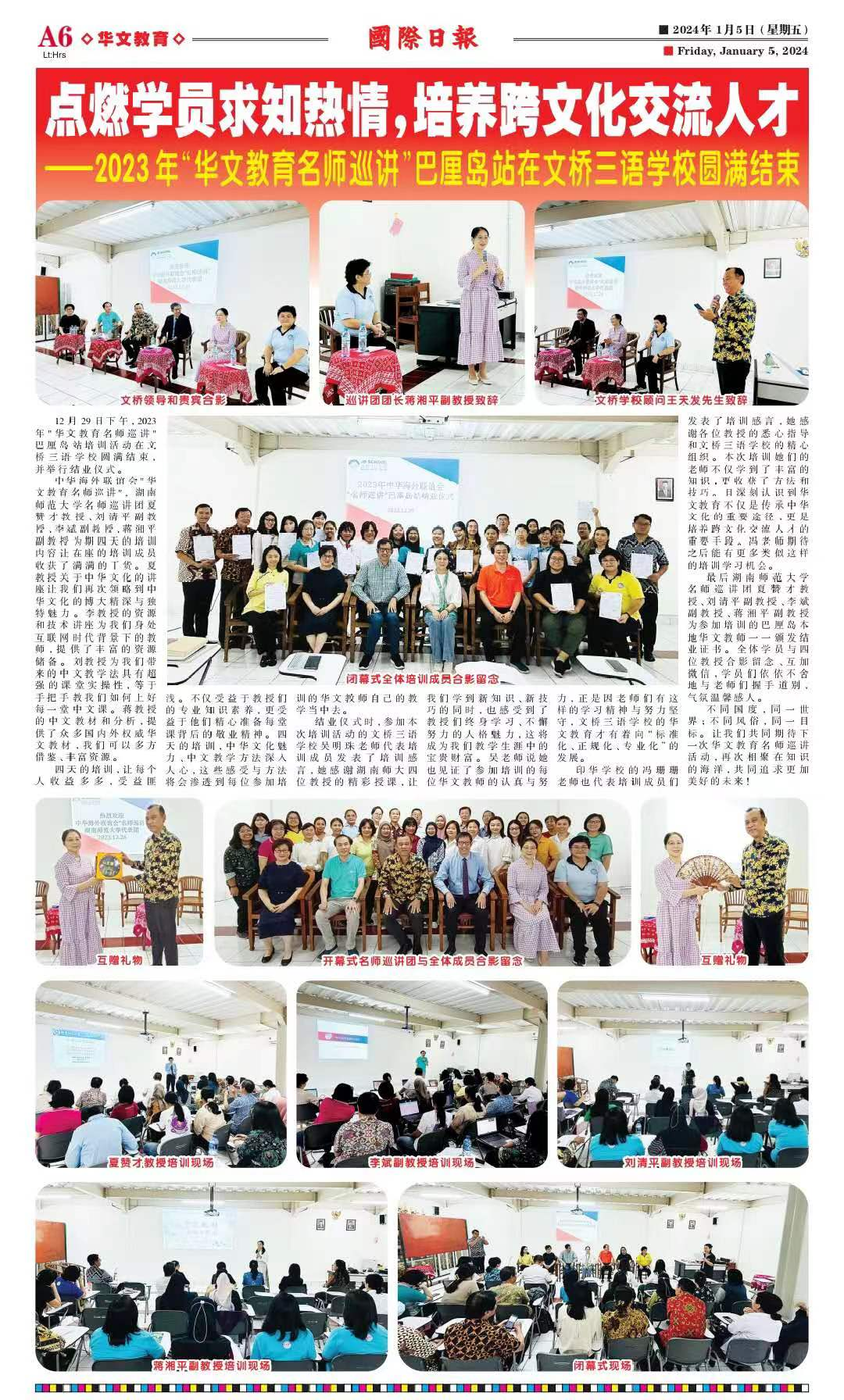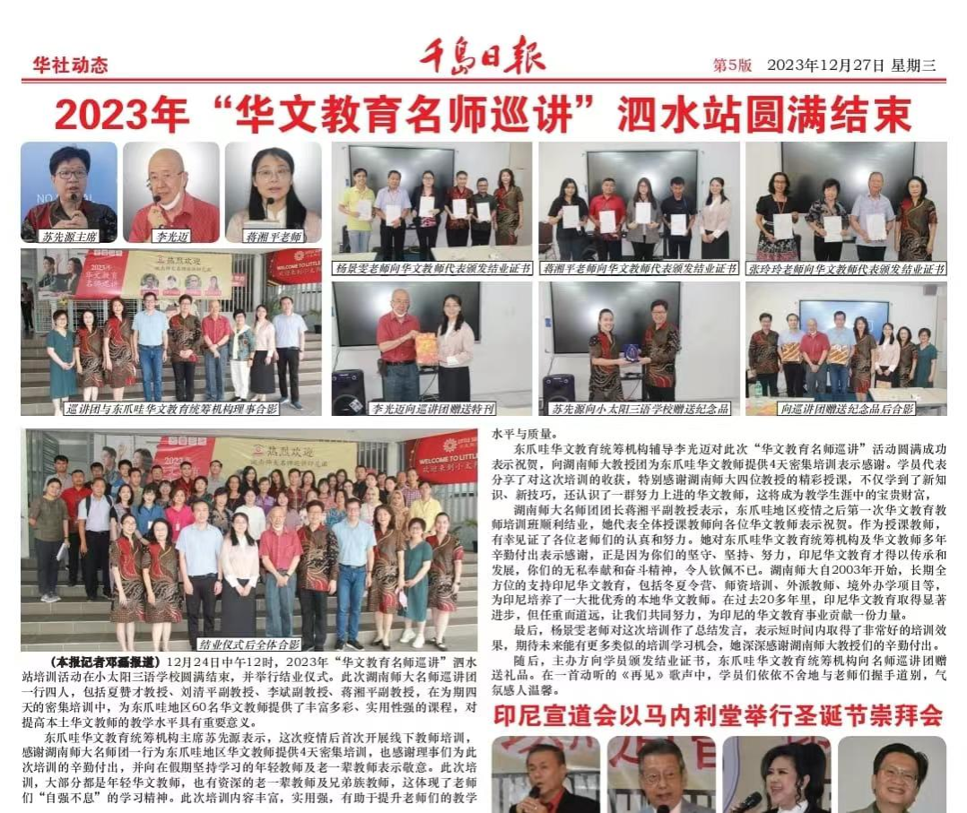 2023年12月16日至29日,由国务院侨办主办、beats365官方网站承办的“华文教育•名师巡讲”活动在印尼雅加达、泗水和登巴萨三地成功举办,共有300余名来自印尼各地的华校董事长、华文教师参加此次活动。