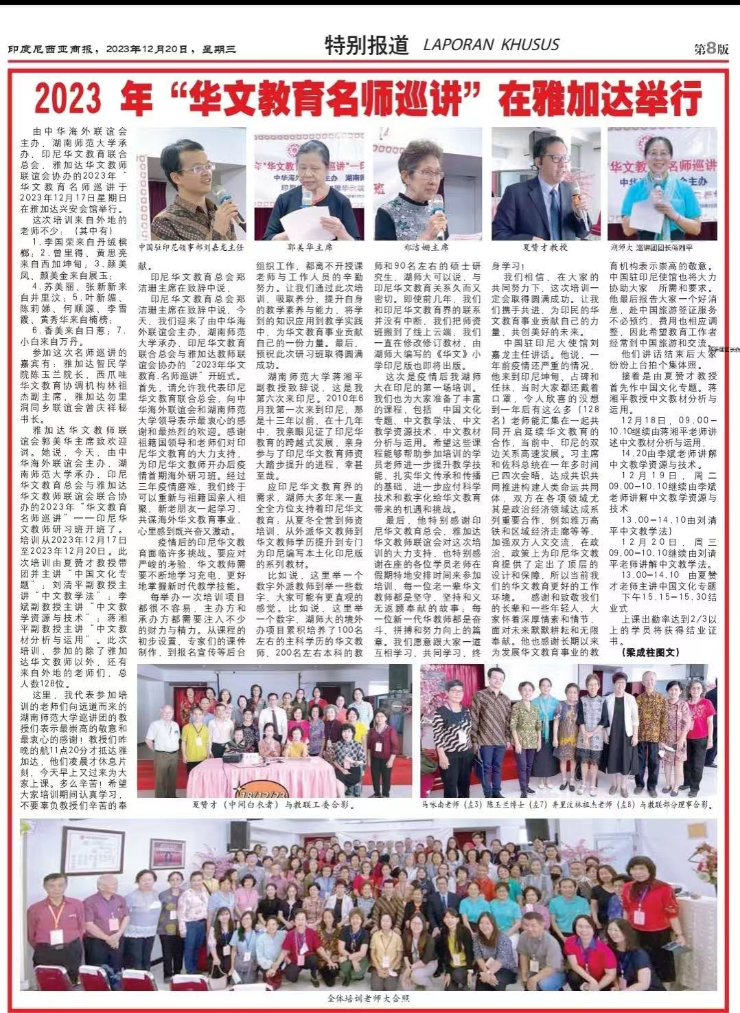 据悉,这是疫情之后印尼华文教育界首次举行大规模中文团队培训。巡讲活动在当地引起了高度关注,《国际日报》《千岛日报》《印度尼西亚商报》等境外媒体对此次巡讲都进行了专题大幅报道。