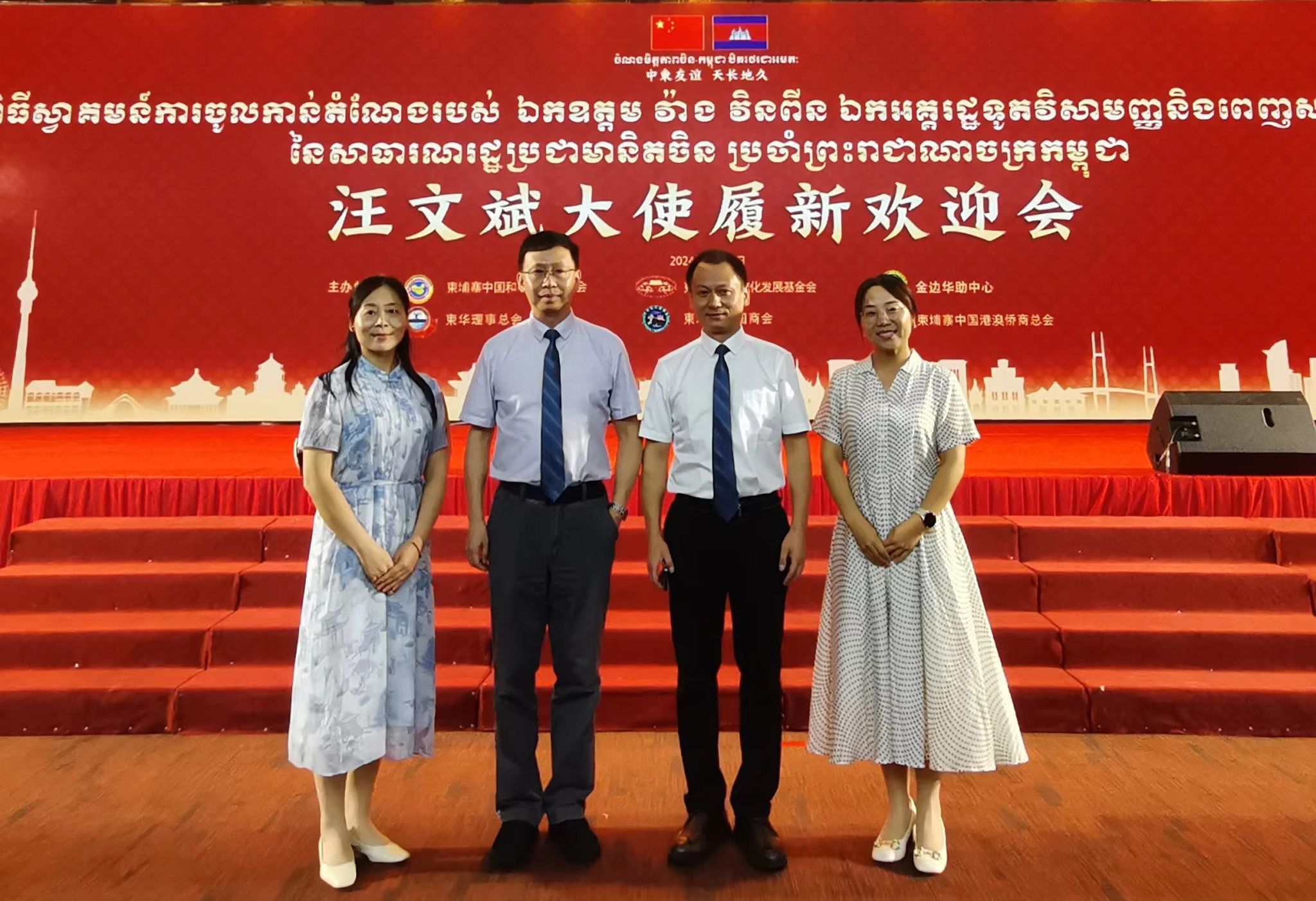 在协办单位柬华理事总会组织的座谈会上,柬华理事总会名誉会长刘明勤、常务副会长郑棉发、副会长蔡伟华等高度赞赏巡讲团的专业水平和培训效果,对公司支持柬埔寨华文教育发展和中华文化传承传播表示感谢,并期待与公司在外派教师、团队培训、华文教师学历化等方面有更多合作。受柬华理事总会邀请,讲学团还出席了“汪文斌大使履新欢迎会”。