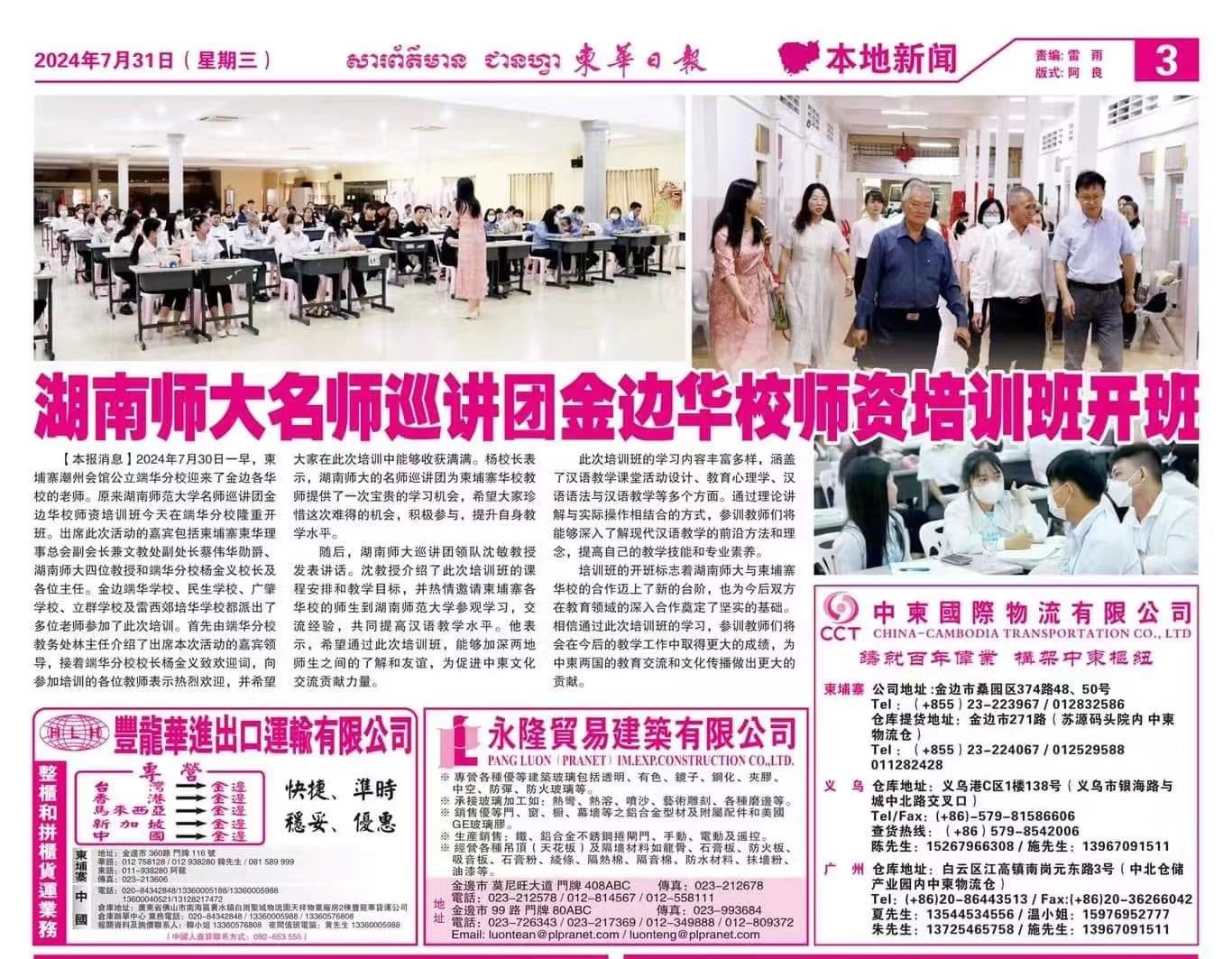 据悉,这是公司华文教育基地首次面向柬埔寨举办“走出去”中文团队培训。巡讲活动在当地引起高度关注,《柬华日报》等华文媒体对活动进行了大幅专题报道。