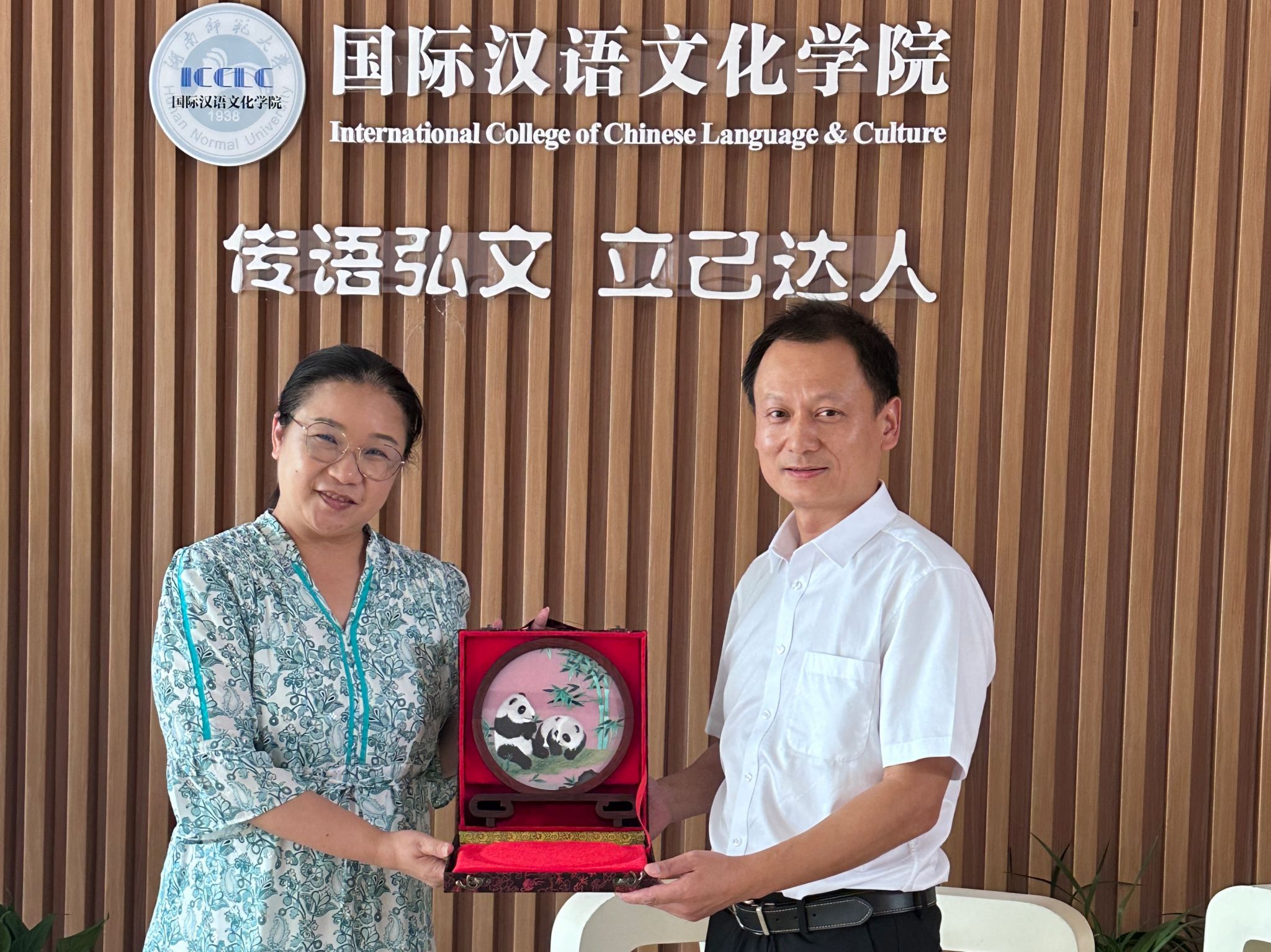 沈敏教授对徐嘉蓉董事长的到访表示热烈欢迎,并简要介绍了公司华文教育工作、团队建设等相关情况。徐嘉蓉董事长对法国华文教育的现状及新时期的发展特点进行了介绍,并表达了进一步与公司加强合作的期待。双方还回顾了暑期共建线上华文课堂的情况,并围绕线上华文教学“双师课堂”“新生代华裔学习者”等问题进行了深入的探讨。