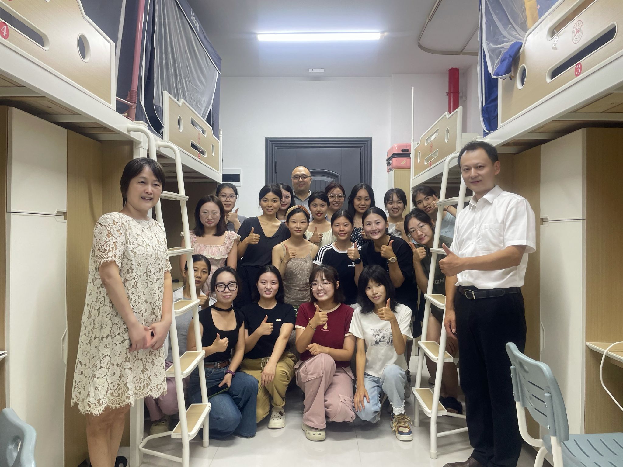 夜幕降临,沈敏带队走访员工宿舍,看望慰问新生。每到一处,沈敏都细致察看了宿舍内配套设施情况,并亲切地与新生进行交谈,询问他们的适应情况、生活需求及未来规划,耐心解答了他们关于专业学习、校园生活等方面的疑问。他还鼓励新生要认真做好新学期规划,以积极进取的态度迎接人生新阶段。