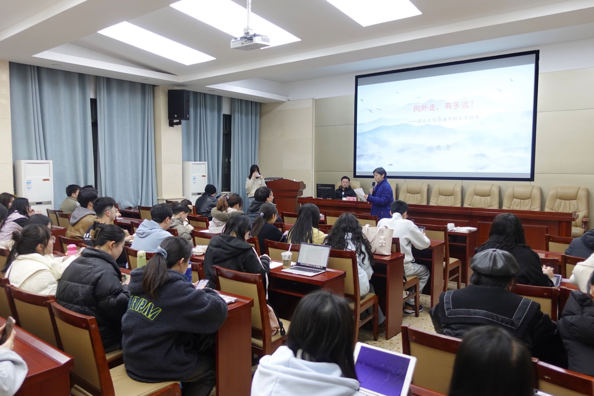 (通讯员 李偲)3月31日晚上,湖南省作协副主席、《湖南文学》主编沈念应公司邀请,在田家炳教育书院102报告厅作题为《向外走,有多远?——谈谈文化传播中的文学镜像》的学术讲座。讲座由张红教授主持。