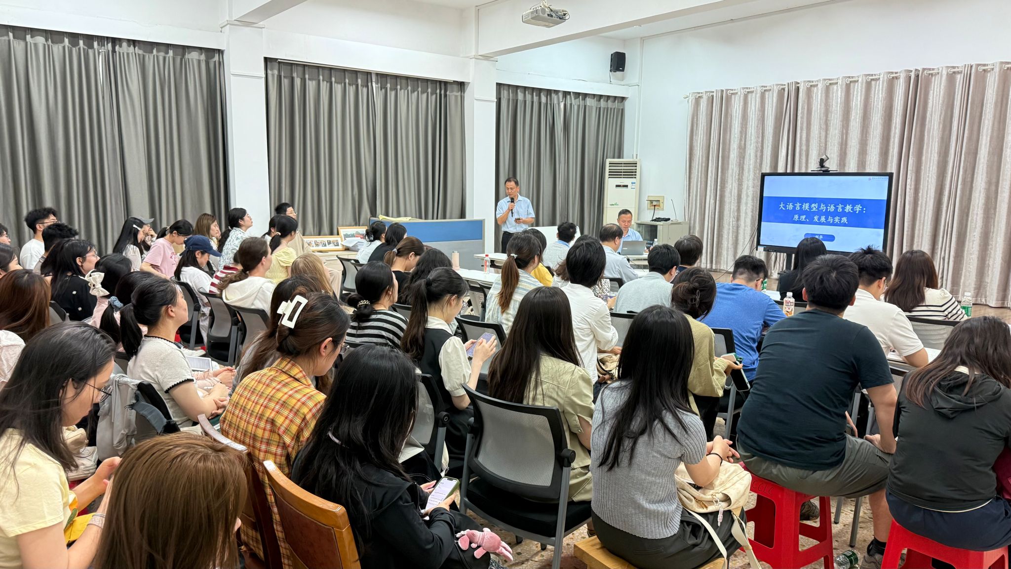 (通讯员 王晨仲)5月23日下午,暨南大学华文公司副经理、华文教育/国际中文教育研究院副经理、博士生导师刘华教授应公司邀请,在田家炳教育书院114室作题为《大语言模型与语言教学:原理、发展与实践》的学术讲座。讲座由副经理沈敏教授主持。