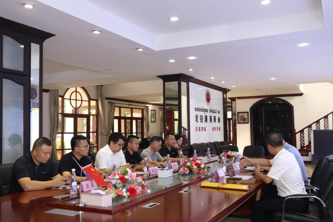 调研期间,课题组专程拜访老挝湖南商会、琅勃拉邦中国商会并举行座谈。座谈会上,中心常务副主任沈敏教授介绍了调研背景与目的,他表示,此次调研旨在系统梳理老挝湘籍华侨华人发展现状,深入研究湘籍华侨华人群体在促进中老双边关系中的独特作用。希望通过实地调研,收集第一手资料,为新时期侨务工作提供参考依据。老挝湖南商会、琅勃拉邦中国商会与会代表介绍了老挝湘籍华侨华人的规模、产业分布及发展现状,重点分享了湘商企业在基础设施建设、经济贸易、教育文化等领域的贡献,特别是在推进“一带一路”建设、开展中老产业链供应链合作、参与乡村振兴等方面的典型事迹。双方还就侨胞子女华文教育、老挝中文教学、侨胞返乡投资等议题展开深入交流。