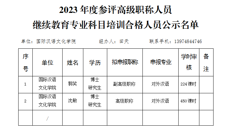 2023年度参评高级职称人员继续教育专业科目培训合格人员公示